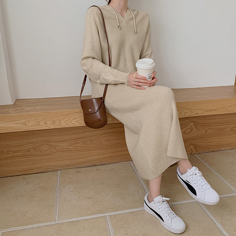 Gdenimjacket – Women’s Dress Hooded Knitted Thicken Long Dresses